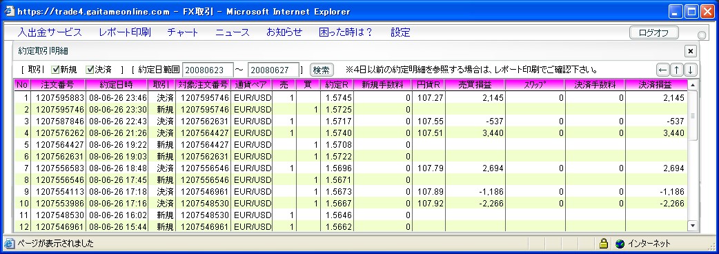 6トレード(投資資金20,000円、レバレッジ200、ユーロドル限定取引です。)